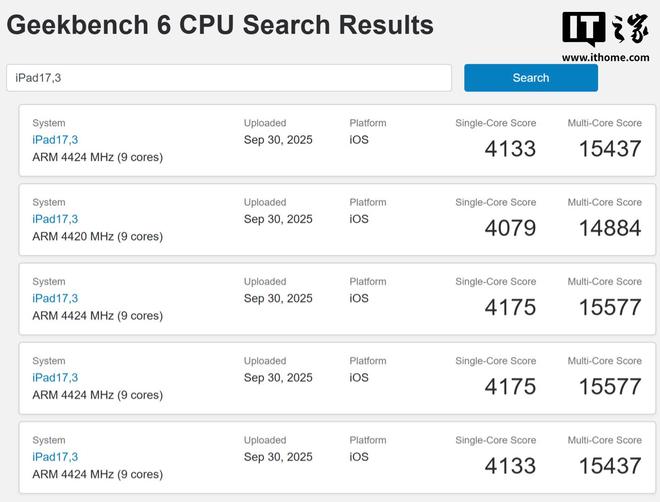 在《十月新闻》的《新闻》中,技术媒体爆发昨天(10月5日)发表了一篇博客文章,报道iPad17,3的痕迹出现在Geekbench Score库中,估计是M5 iPad Pro,总共有5个音符。最高分数根据最高的多核分数排名。得分最高的记录是单核的4175点,多核为15577点。根据Geekbench运行得分库的说法,该设备可能是未来高端iPad Pro的原型,Apple M5芯片高达4.42 GHz,并且测试设备还配备了12GB的操作内存,表明存储空间可以启动256GB或512GB。在运行分数方面,在6.5.0的Geekbench版本中,M5 iPad Pro的单核测试分数达到4175分,而多核测试分数为15577分。 Thestrong单核运行标记意味着M5可以轻松控制每日应用程序,Web浏览和大多数游戏场景。相比之下,Apple的M4 iPad Pro的单声明标记为3720点,多核标记为13499分。 M5 iPad Prom4 iPad Pro的单核增加了41753720,12.23%多核1557713499,15.39%的比较。媒体比较了高通Snapdragon X2 Elite Extreme Chip。 Snapdragon芯片的单核分数约为4080点,多核得分高达23491分。它附有与房屋相关的房屋以下: