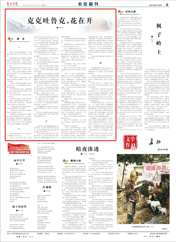 kerkurk,花朵绽放■王扬西安格的空气,一直滚动到雪谷。沥青路平坦而干净,我们只是一辆汽车。在宽阔的大炮中,河水很清楚。低和广泛的草仍然是黄色的。两侧的起伏的积雪覆盖的山脉仍然是冬季山脉。在雪线下,仍然有灰黑,黑色或彩色的锈岩和流动的沙子,这些岩石没有改变数十亿年。 Zhang Qingligang是一名疗程官员,与我一起来到边境,他说:“ Kerkturk不会下雨,每年仅三个月就下雪了。一旦9月到来,巡逻队就骑马了。巡逻的一些部分覆盖着雪,马在雪中蔓延,白眼蔓延。”伴侣在三个侧面被山所包围,包裹着雪的山脉被冰和雪覆盖,世界是一个人,冷空气摧毁了骨头。它仍然很明亮。0pm。早晨七点钟,升起的阳光首先在山顶的白色冰和雪地上闪耀,然后光慢慢移动到山,山脚和大炮。据说很长一段时间以来对该方案进行了法规,任何在KK Turuk的边境国防公司种植一棵树的人将获得第三种功绩。公司指挥官朱·郑(Zhengyi)笑着说:“现在我们已经植入了很多生命。”树木在温室中,有无花果,蜡,葡萄柚和柠檬,小果树充满活力。还有一排玉米和一排向日葵。玉米长大了,高高又高,耳朵已经盛开了。 Zhugyi说:“我以前不认为树木可以种植在温室。这是我第一次看到果树种植在雪地温室中,高度超过4300米。 Zhu Zhengyi说:“过去,道路状况不好,安全很困难。在有限的温室中只种植蔬菜叶。 2019年,建造了沥青道路。我们预先安装了专业的宽容,以去除嘴唇的雪地和下沉指甲。 Sun Xiaokun是2014年9月加入军队的第二级中士,他说:“我在加入军队之前在当地工作了三年多。沉默了一段时间,看着我说:“我喜欢军事营,我感到自己一生的价值。当他是私人的时候,他参加了该公司的150多个巡逻。 “巡逻点的高度超过5,400米,每次您上达班时,它看起来都像“梯子”。许多巡逻道路不仅陡峭而坚固,而且在您的脚下也有沙子和砾石的操作。你不能骑马,你可以走路。”张杨说,“有时候,我从生活中回到公司,我遇到了风和雪。雪在膝盖上,我看不到这条路。那天,驾驶员敦促55公里的路超过5个小时。四川。他在这里工作并住了3年零7个月。他的身体健康是公司中最好的。该公司有时在巡逻...”ND他似乎在自言自语。这家为期两年的制造商结束了,他的母亲要他回去学习。他终于选择留在团队中,并捍卫Shuai Jiahong一生中练习的防守。塔吉克的防御官员和士兵面临的审判面临。他们需要继续填充烤箱中的煤炭并渣出渣。这里的温度通常超过40摄氏度。该公司有3个锅炉,大约需要1个小时才能增加煤炭一次。 2022年,煤炭可以转换为电力,公司和前哨基地将使用电动锅炉。 “这不仅是锅炉燃烧。当新兵进入公司时,他还曾担任军事马匹育种者7个月。他说:“军事马在冬天在冬天吃干草和玉米,他们必须在夏天开车去咆哮,然后在夜间回到山上。 “四月份的一天,鲁奎(Ruiqing)小队的首领要求拿两张棉花毡去山寻找他。棉花毡与超过70公斤相结合,他不能同时携带所有东西,因此他只能跪在地上并慢慢抬起。在悬崖上,捍卫国家并保护边界,您不能将自己视为苦难,但您必须将苦难视为幸福。 “我笑着说:“快乐来自哪里? “他是一名一流的中士,笑着说:“只要人们理解奉献的价值,他们就会在心中幸福,奉献精神也会增长。过去,巡逻,无论它有多远或困难,他们都有骑马和远足。 2013年,一些道路的路段是用简单的道路建造的,可以乘坐汽车。当我在2008年第一次来这里时,没有很长时间避免在电话外面,前哨基地也有手机信号,工作和生活条件越来越好。他是两个男人的父亲。老行塔在CA中间的山上nnon。 Adobe建造的墙壁的外层是沙子的泥浆和ibabaw。从塌陷的间隙中,可以看到一层黑牛肉。他说:“在2008年之前,哨所没有军营,所以军官和士兵住在旧哨所的平房里。2009年,前哨基地建造了营房,我们离开了军营。”在柱子下方的平台上,有两排具有Adobe结构的扁平房屋。房屋的一些墙壁倒塌了,屋顶仍然完好无损。他告诉我,当前哨官员和士兵居住在这个泥泞的房子里时,有一头驴专门载水。士兵们在山脚下充满了河水水桶的水,驴静静地带来了它。哨所里的人们装满了水,它将回到河中自行采取它。人们永远不需要将其赶出道路。驴子大约10年将水带到了前哨基地,但最终死于老年前哨的背面。旧塔周围的山丘上有许多小花。有洛迪奥拉的簇,鲜黄色的花朵在短茎上盛开。这里的Rhodiola开始盛开,紫色转弯。一天中的红色花很少,其中大多数是茎和花朵。在这里,我第一次看到了阳光的白花,它们的所有斜坡都温暖而充满活力。还有一朵小黄色的花,我不知道Shi Lian。黄色的小花几乎没有茎,小花在地面附近盛开。像人类一样,植物只能生活在这种坚硬的贫瘠的沙子中,让生命盛开。这里没有春天,thetags不长,也将在6月和7月听到大雪。霜冻的季节很短,花朵和植物在生长之前将枯萎和黄色。小的野花应适应这里的气候,一旦将它们指向地面,就应该盛开,否则它们会IS开花季节。无论自然环境多么严重,遥远的Kerkturk,每个草和这里的每朵花都有自己的春天。