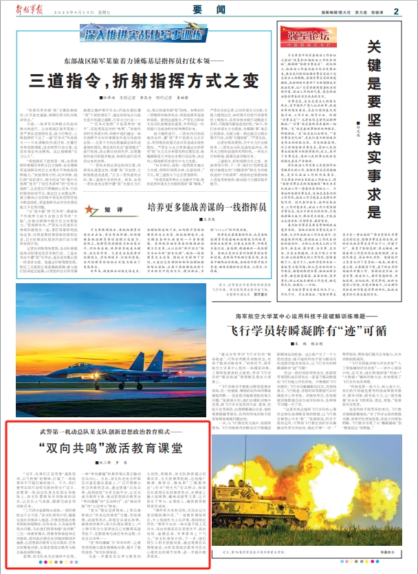 武装警官第一个移动军团的脱离改变了意识形态和政治模式 - “两道路共鸣”激活教育教室■当时liu erfeng luo han“”当时,祖先赢得了祖先赢得了看似不可能的战斗,以'与敌人的精神与敌人的精神进行奋斗,并在能量上击败了一项努力,我们必须继续努力,我们必须继续努力,以继续努力。武装警察的第一个移动军,在培训之前动员了CAO导师,官员和士兵成功并成功完成了各种培训活动。 “这三个脚的讲台与战场相连,一个好班级比一千个单词要好。”支队领导人已经提出,在加深实践培训时,视野和政治教育面临实际问题,例如该地区的频繁移动,工作变化和员工流动。 f或这个原因,他们探索了建立一个三合一的“战斗和训练”模型,并扩大了培训领域的教育地位,并安排政治教师在培训间隔内同时教授,以便意识形态和政治教育可以准确地连接教育以及对战争的教育以及培训的需求和活动。在早期阶段,分队在调查中发现,“单向灌输”的教育无法阻止官员和士兵的心。到目前为止,基于充分倾听官员和士兵的意见和建议,该支队是由教育活动所掌握的。通过为“谈论军事活动和战争的例子”建立共享和交流平台,官员和士兵已成为教育的主要机构,并从“单向indoctrinatio”中促进了意识形态和政治教育的转变n“到“互动讨论”,从“被动教育”到“主动”。在宣传的“火花火”遗址理论中,唐明先生使用了简短的视频,动画和其他形式来复制官员和士兵的成长故事,赢得了热烈的掌声。 In a theoretical class of a specific brigade, Sergeant Han Tianyang told everyone about his process of overcome by difficulties and completing the tasks under the test of scorching heat and high temperatures, resonated with officials and soldiers ... "LUmiko 'One-Way Indoctrination' in 'Two-Way Resonance', allowing the supply edge of education to accurately connect to the requested side that improves the quality and efficiency. "The head of the支队说。为了进一步刺激参加教育的官员和士兵的主动性和热情,探索并建立了诸如分享班级以及班级教学和教学课的教学的机制,摘要和促进微型级,微型和微型电影的“三种微型教育方法”;为了确保教育取得更好的结果。 “经过一班教育后,朱·吉中士作为士兵的法官对该地区进行了分析。”不应将教育分配给道路的丰富,而应基于提高意识形态水平,政治意识,道德质量以及军事和士兵的军事阅读。 “他们将介绍相关的智能设备,以观察官员和士兵的情感爆发,研究意识形态和政治教育对官员和士兵心理状态的影响的影响,并将进一步提高教育的质量和效率。