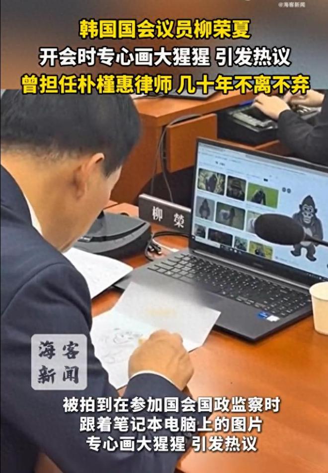 据韩国媒体《朝鲜日报》报道,10月27日,韩国国家力量党党员、朴槿惠律师柳英河在参加国会国务视察时,被拍到用笔记本电脑拍照并专心画大猩猩。视频曝光后引发热议。柳英河与朴槿惠相识近20年。如果朴槿惠参加2004年大选或者2007年和2012年总统选举,刘英河都会不遗余力地帮助她。朴槿惠总统被弹劾后,柳英河也积极为朴槿惠辩护,并探视监狱。 (来源:海科新闻)