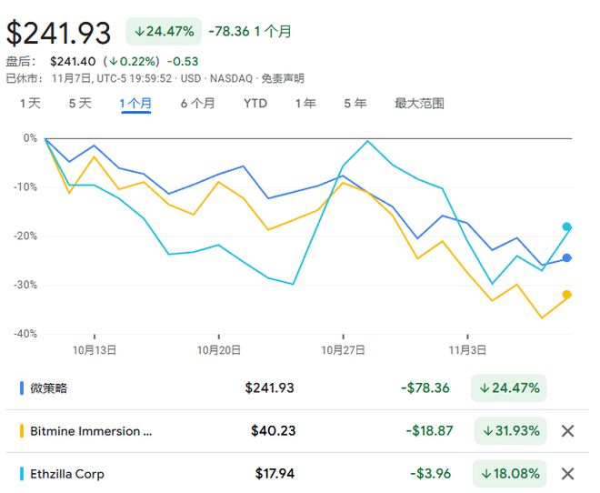 去年十月开始的加密货币抛售正在成为今年华尔街最热门的投资策略。通过借债或筹集资金购买比特币、以太坊等加密货币的“数字货币财政部公司”一度被投资者视为使用加密货币的绝佳工具。现在,他们的股价跌幅超过了他们持有的代币。这一模式由 Michael Saylor 在 2020 年首创,他将一家名为 MicroStrategy 的小型软件公司转变为比特币鲸鱼。该公司市值去年7月曾达到近1280亿美元的峰值,但目前已跌至近700亿美元。 MicroStrategy 的股价在过去一个月下跌了 25%,而比特币同期下跌了 15%。本轮暴跌影响了许多认真的投资者,包括著名风险投资家彼得·蒂尔(Peter Thiel)。 Thiel 支持的以太坊财资公司 Bitmine Immersion Technologies 过去一个月股价下跌超过 30%,他投资的另一家生物科技公司Ethzilla同期股价下跌了23%。加密货币市场总价值较 10 月 6 日触及的近 4.4 万亿美元的历史高位已下跌近 20%,几乎抹去了今年前 10 个月的所有涨幅。年初至今涨幅仅为2.5%,比10月6日创下的12万美元历史高点低了约18%。国债公司的溢价交易逻辑受到质疑。数字货币财资公司的主要问题在于,投资者实际上为持有加密货币的公司支付了高于其资产净值的溢价。 Spectra市场总裁布伦特·唐纳利(Brent Donnelly)直言不讳地说:“这整个概念对我来说毫无意义。你只是用2美元购买一张1美元的钞票。最终这些溢价将被压缩。”这种怀疑并非无稽之谈。华尔街著名卖空者吉姆·查诺斯 (Jim Chanos) 在购买比特币时做空了 MicroStrategy,他认为投资者没有理由支付Saylor 公司的溢价。周五,他告诉客户是时候结束交易了。他在周日接受采访时表示,尽管财政部公司股票仍被高估,但溢价水平已不再极端,“这一逻辑已普遍实现”。当国债公司首次出现时,它们为之前难以直接投资加密货币的机构投资者提供了一个渠道。但过去两年推出的加密货币交易所交易基金提供了相同的解决方案,涵盖了财资公司的独特主张。马修·塔特尔表示,此次扣押放大了“数字资产库公司本质上是杠杆加密资产,因此当加密货币下跌时,它们会下跌得更多”的风险。他管理的旨在提供双倍微层回报的MSTU ETF在过去一个月下跌了50%。这一行动的效果在许多财务公司中显而易见。塔特尔还强调,“比特币已经证明比特币资金公司Strive Cole首席执行官Matt表示,该公司今年早些时候筹集资金购买比特币的平均价格比目前水平高出10%以上。Strive股价在过去一个月内下跌了28%。Cole表示,许多资金公司“陷入困境”,因为面临亏损的公司很难出售新股来购买更多加密货币,这可能给加密货币价格带来压力,并引发人们对加密货币价格的质疑。商业模式 出售比特矿期权以帮助损失 持乐观态度,在社交媒体上声称比特币处于“折扣”。