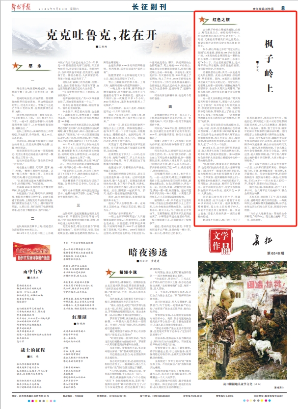 在Fengzi Ridge■通往Fengzi Ridge的山路越来越陡峭,在山上,野花点缀着。反日战争胜利后,前河口村被更名为“ Madingfu村”。当我年轻的时候,父亲经常带我们去山上,拜访了马丁福和其他11个烈士。如今,重建了被山包围的“ Madivian烈士公墓”。新建造的235步步骤直接通向广场。这座12米高的纪念碑以鲜红色的五点恒星为主导,八个大词“无死亡的革命烈士”刻在下面。随着白色大理石基地的缓解,有一张士兵的照片,有八条路线的士兵,大胆地向前走。他们看上去Matatag,向前看。与熟悉的山路一起,我走进了Madingfu烈士公墓。目前,山微风在我的脸上爆炸,松树和柏树庄严,绿色阴影正在发生变化。在公园里,12个烈士的坟墓默默地说明了鲜血和火的记忆。一条对联刻在烈士马丁福的墓碑上:“牺牲自己的生命,永远奉献世界,牺牲自己的生命,成为义人,女主角的精神,在天空中微笑。”根据当地的习俗,我把我带到墓碑前的12个塔古蛋糕放了。有一个这样的塔古·扬格(Taigu Yange)这样唱歌:“阳光明媚,蓝天,灿烂的天空,众多人群中的团队,村民,村民,我清楚地说,这是继续战斗的第30个方案。指挥官,领导人,领导人,政治委员会是政治委员会,领导了一支球队的一线赛车,并驾驶着狂欢的范围,狂热的范围 - 战斗。,山脉形成自然屏障。马丁福(Ma dingfu)是第129师第129师八军路线第10旅的政治委员会,曾经带领第八军士兵与塔格(Taigu),qixian,yushe和其他地区作战,并以其土地的繁荣为准,并与日本军队和一支木偶进行了协调。 1943年6月,小麦浪潮在北部的农场周围滚动,敌人将手指指向农民的成熟小麦,并不时将人们送到小麦田。 TH -30团是IIT被命令负责保护Taigu县Nanshan基地中心林地区的标签 - 装饰。 “抢走并产生。食物是人民的生活,也是我们抵抗战争的希望。敌人想摧毁小麦收割,但没有门!”在瞥见的小麦田里,高大而魁梧的马丁福释放了一场决定性的冒险。确保收获塔格(Tag -Hot),他和士兵们帮助村民在热量中收获小麦。在民兵的合作中,他采取了阻止和打断打扰日本和木偶部队的袭击的策略。在宗比林的伏击期间,马丁福命令他的部队杀死日本中队的领导人,擦拭了30多个下午和木偶,并取得了巨大的成功。回想起烈士马丁福的一生,我离开了烈士的墓地,我遇到了天乌(Tian Dayou),他是他90多岁的老人,在他的村庄里,在山上旅行中。他是深色的皮肤,剧烈地是狂热的人。田先生有时间时,他去了烈士公墓走路。我去问老人告诉我烈士的牺牲。 1943年7月23日,军事派对在风水中举行。天达那年9岁。根据他的纪念,来自附近村庄的人们急于庆祝那天听到新闻的声音。成人发光篝火和SINg and Dance,这是非常活跃的。出乎意料的是,在深夜之后,天·戴乌(Tian Dayou)和他的年轻兄弟姐妹醒来了他们的母亲。他们随机穿上衣服,沿着第八军的路线前往Thosemountain。这是因为叛徒线人,在塔古(Taigu)的黄古(Huanggu)证据中隐藏的200多名日本和木偶部队利用了当晚的夜晚发动偷偷摸摸的攻击,并发现站在山区警卫队的哨兵。当时,我公开了,敌人处于黑暗中,一千多人的生命处于危险之中,情况非常关键。在这一点上,老人停了片刻,说:“幸运的是,第八军陆军士兵保护村民搬家,所以每个人都逃脱了一场灾难。”田·戴乌(Tian Dyou)长大后,长者听到了随后的战斗。那天晚上,在潮流中,弹药和贝壳被关在流星,谋杀的声音震撼了瓦尔莱。马丁福被枪杀,并主张命令战斗,直到最后一滴鲜血被刺穿并被许多人死亡。他只有28岁...老人天·戴乌(Tian Dayou)叹了口气,举起双手在他身后,头上走到山顶。根据历史记录,激烈的战斗持续了三个多小时。在第八军和士兵军官的掩护下,所有人都被安全地移动。在我们意识到这一点之前,是中午,山上的阳光照耀着,野花在道路的两侧开花。轻而易举,花瓣像精灵一样跳舞,仿佛为山和河流和平以及该国和平的烈士提供了烈士。 “为什么世界总是在那里?英雄的生活在盛开花朵。”在Fengzi Ridge,花朵遍布山脉和农场,几年 - 在空中盛开。