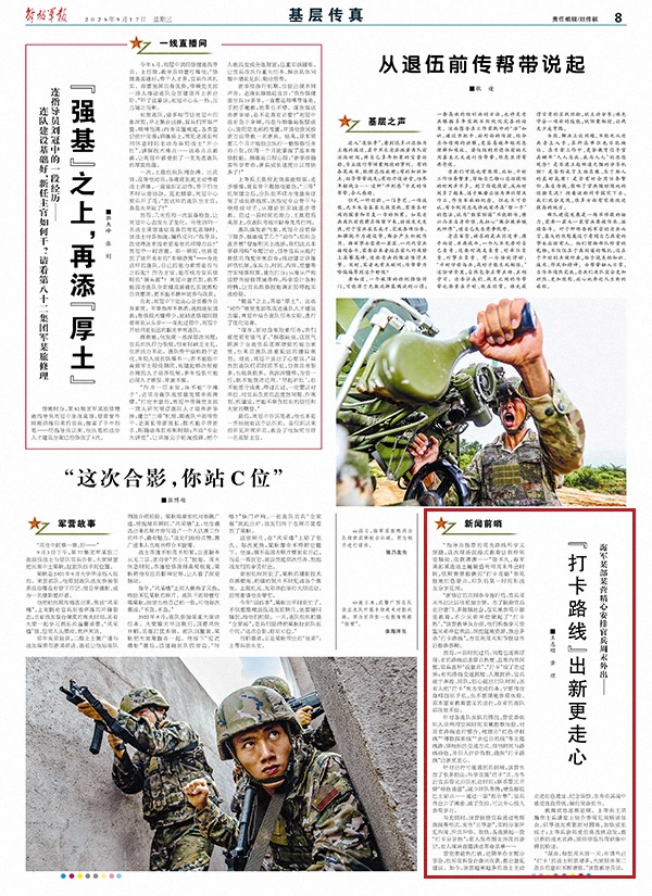 一个特定的海军单元的营,根据该营提供的“入住指南”,仔细安排了周末发布的时间来访问基地的红色美丽地方。返回团队后,他尽快与同伴分享了自己的经验。 “在实施了新修改的法规之后,官员和士兵在周末出来比以前更方便。鼓励官员和士兵从营地出来,与社会互动并在现场探访中接受教育,许多兄弟单位设置了'登机手续的热潮'。”营导师说,他们正在积极地从兄弟姐妹单位的技能中学习,深入挖掘到居民资源,并推出多个“登机手续检查”,以为周末和假期出来的士兵的官员提供参考。但是,一段时间后,问题逐渐出现:一些路线正在追逐好地方的普及,而忽略了深度OF内容。官员和士兵称其为“无聊”和“入住”成为一种形式。一些路线被拥挤而紧,官员和士兵们忙着排队,记得他们比返回团队的时间更长。有些人考虑“入住”以完成任务,而宁愿留在咖啡馆里玩手机,而不是在网站上访问和体验它。旅行原始教育,但在某些公司中,结果不好。为了应对每家公司报告的情况,营党委员会安排使用其空闲时间进行进行检查和经验在网站上进行检查和经验,“结合原始途径,整理主题途径,例如“红根搜索线”,“博物馆探索行”,“靠近自然线”,“靠近自然线”,以及“近距离运输方式”,“详细介绍”详细信息,并介绍了详细的属性,并介绍了详细的属性。 “签到”留下足够的暴民官员和士兵返回的时间;可以专注于访问和PAG -AAAARAL。同时,该营鼓励官员和士兵通过视频链接和其他形式充当“云旅游指南”,以实时分享,被看到,听到,思考和理解的内容。 Di-nagtagal,Ang Bawat Kumpanya ay nagtakda ng Isang“登机手续共享狂热”:Ang Ilang Mga tao ay nag-nag-post ng tala sa paglalakbay na May Ma May Mga larawan t t teksto,at ang iilang mga ay naag sa mga sa mga sa mga agemunary na na na na na na na na na na na na na na na na na nay na nagenarary natarary sharary ... komite ng partido ng kampo ay sinaktan habang ang bakal ay mainit, na gaganapin ang mga sesyon ng pagbabahagi ng tema nang regular, mga organisadong opisyal at sundalo na kumuha ng entablado upang kumuha ng stock ng kanilang mga obtained, and forward opinions and suggestions.如今,越来越多的营士兵主动采取了行动,以进入红废墟和纪念区,体验了颤抖的美丽传统nd加强了他们的使命和责任。教育结果逐渐出现。士兵王·霍安(Wang Haohan)谈到了他在士兵的演讲厅的经历,指导他的同伴面临勇敢的艰辛,并加快了他们的成长和发展。士兵唐郑(Tang Zheng)的灵感来自经典战斗的例子,并提出了新的战术思想,这些思想在从小队和排学习后在实践中得到了证明。 “现在,周末到一天,申请“入住”的士兵人数急剧增加,每个人都对交付第二城镇的意识正在上升。”营讲师说。