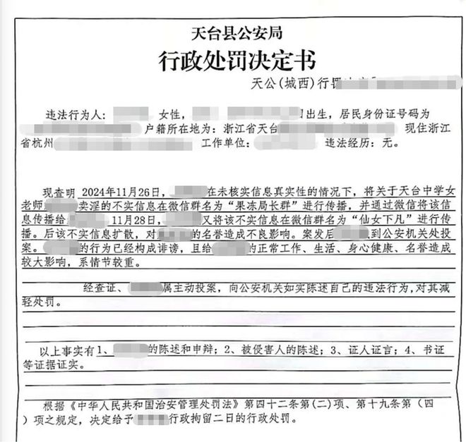 杭州的一位女老师在与三个小组中的三个人聊天以与他人诽谤。林女士收到的“行政罚款决定”的女老师指控塔泰县公共安全局法院,要求恢复Tintai县公共安全局在2024年12月24日签发的“行政罚款决定”,并命令被告在预防期间向原告支付原告的经济损失。此案将于9月24日上午在塔泰县人民法院举行。林林(伪匿名),2024年11月26日,林女士对老师卖淫的误导,以微弱的待办事项为“ jelly directorgroup”,而没有证明信息的真实性,并传播给Zhao Moumououmou的真实性。 11月28日,林女士以微信集团“童话降落到地球”的名义传播错误信息。后来,错误信息应该SPREAD,这将对老师的声誉产生负面影响。事件发生后,女士展示了林女士的屏幕截图。并减少了他的惩罚。他对罚款感到不愉快,并在塔泰县人民法院提起了行政诉讼。女士说,“童话降临到地球”小组和“果冻导演集团”是他的两个小组。前两个最好的朋友被包括在内,后者是与父母的家庭团体。他没有主观的目的,而且他没有目的是传播谣言。林女士在塔泰中学工作。如果在微信团队中讨论了这一点,那么当地有不同的谣言。在微信集团中,只有三个人聊天是私人和隐藏的。该声明不会也不会导致对其他党社会的分析减少。 2024年12月3日上午,昌奇警察的Pulicy塔泰县公共安全局的车站突然到达了杭州,并带林女士在附近的警察局询问了情况。要与警察合作,该警察由林女士解锁,他的手机并一起解释了所有聊天。林女士完成过夜的问题后,他累了回家。 12月24日上午,一名警官从塔泰县公共安全局的成奇警察局叫Qiu,并立即向塔吉(Hungzhou)的Lin Hurry女士到Taaighou县。 “领导者想和你说话。”当他到达派出所时,突然被告知要入狱。该论文发现,在这一事件中,女士的另外两个最好的朋友。林在小组中,一个人在培训机构教音乐,但不受限制,而Isa PA也是一名屋顶老师,并阻止了行政管理2天。另一位与微信中林女士谈论此事的老师阻止了ADM分配持续了4天,但由于怀孕而没有被杀死。根据行政罚款决定,警方认为女士的非法事实是非法的。林将主要将不正确的信息发布给两个微信组,并将信息私下发送给个人,“不正确的信息应稍后传播,这将对Shi Moumou的声誉产生负面影响。”女士认为,李女士不应将传播虚假信息的责任承担给他。他从未创建或传播它,也没有与公众或微信团体交谈。 “这是与他最好的朋友聊天的非常普通的日子聊天。基于此,该报纸与Shifeng警察局(前成奇警察局)的固有人员联系,并说有案件的案件并不方便。 Tiantiai中学说老师是谣言说,警察要向案件报告,学校的情绪伴随着学校。目前不存在,并且是正常发展。该论文从塔泰县的相关部门中学到了案件,其案件已涉及司法程序,所有这些都遵守法院判决的结果。在他的时刻发布的一名男子的扩大阅读说:“李导演已经从他的职位上删除,因为他带来了基本的舆论”,在4天内被限制在4天内。来自Yuanjiang的一名男子Gao guanghaua部门Yunnan的一名男子回应了4天,以压制Yuanjiang County公共安全局的行政人员,因为他发布了他的时刻,他的时刻说“导演Li已从他的职位中删除”和其他内容。 Yuangong(城市)Yuanjiang County公共安全局第182号决定第182号行政罚款裁决表明,没有核实解雇的真正理由l ofli moumou删除了涉及学生在标签日期期间的安全性的高豪阿(Gao Guanghaua),导致其他权利和重复受伤。 10日,Yuanjiang县党委员会部门负责的人向Hongxing News Reporter解释说,Li Moumou处于Yuanjiang County教育和体育局的“同一职位” 3年零9个月。根据干部的选择法规和任命,李·穆莫(Li Moumou)的立场被调整到同一水平,这是正常的位置变化。 Gao Guanghaua说,他最初在片刻发布的意图是“只是因为有罪,而不是诽谤李·穆莫(Li Moumou)。他对上述罚款的决定不满意,并决定申请重新管理的考虑。 Gao Guanghaua是一名29岁的男子,在微信时刻张贴,在4天内被限制在4天内。他是一辆急于检查Yuanjiang县一家公司的车辆。他负责评估水泥状况作为较低的产品。 Gao Guanghaua说,9月1日,他得知党委员会秘书兼Yuanjiang县教育和体育局局长Li Moumou被撤职,因此他发布了一个朋友圈来审查它。 Gao Guanghaua的屏幕截图表明,那天15:49,他在微信中发布了:由于时钟,Li导演Li被从职位上删除。我不是故意的。 Gao guanghua时刻的屏幕截图已在这些时刻发布,Gao guanghua还发送了4个“哭泣”表达式。 Gao Guanghaua向Red Star News Reporter解释说,当时他在“审查的基本公众舆论”和“ Direction Li被删除”之间做出了一些完全联系,但他最初的目的是表达自己的罪恶感。 Gao Guanghaua给了他朋友的语音聊天和当时的事情的笔记,表明Li Moumou被删除并问他:“我感到内gui。技能是毫无意义的,只会增加B当时对父母和老师的厄登(Urden),警察还告诉我,他们会知道为什么李·穆莫(Li Moumouou法律。 《红星新闻》(Red Star News)指出,高瓜(Gao guanggua)的doong拥有近5,000名粉丝,而高豪(Gao Guanghaua)以及对其某些个人贡献的解决方案。在夏天,Yuanjiang县要求学生的父母在手机电话上完成两个“夏季安全提醒”每天。当时不入住的学生或父母是班级教师直接命名的。由当地学校发布的信息表明,安全主要是在“溺水预防教育和监督”,“交通安全”以及其他提醒。 Gao Guanghaua的录音表明,在公开了“登机手续”事件之后,县教育和体育局局长李·穆莫(Li Moumou),两人要求他见面。两人承认时