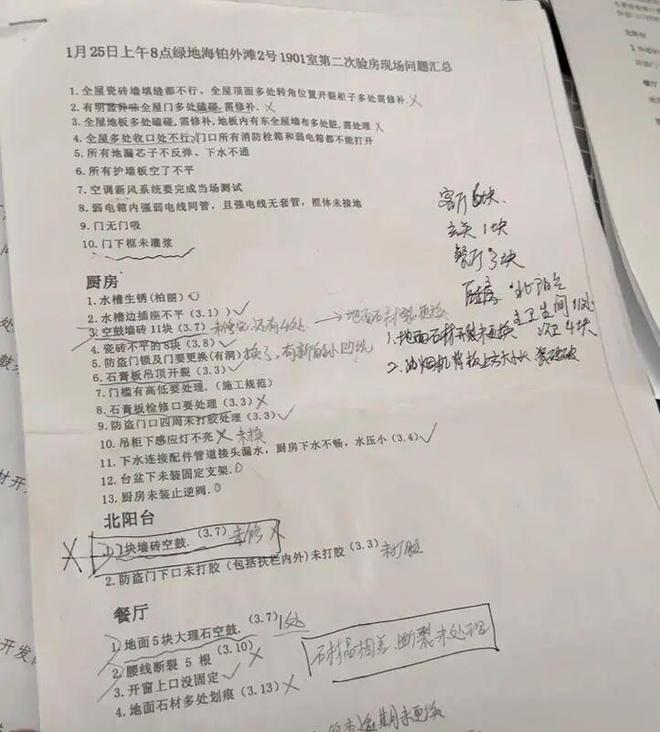 市民于女士向微信头条号“新民助力农夫”求助。他斥资近2000万元,在黄浦区西府路88弄的绿地海坡外滩二期买下了一套精装修的新房。自 2023 年 10 月交付以来,他发现了持续存在的问题。尽管他多次向开发商总部谈话、发信,但维修过程就像“挤牙膏”,很多安全隐患并没有得到解决。距离买下房子已经快两年了。存在130多个问题,其中20多个尚未修复。一家人还没有搬家。这绝对是他们回不来的房子!邦邦君亲临现场,亲眼目睹了180多平米高端住宅背后的“惊艳装修”。关于精装修的问题有上百个。谈起家里的问题,验房师一进来,女士的记忆就来了。当天,他检查房屋时,发现前门南侧的装饰铁板上有划痕,门外的墙砖也有裂缝。女士拿着当时的检查报告,看到了《绿地海博外滩二期2-1901室住宅装修改造工程现场质量检查发现问题汇总》厚达108页,详细列出了130多个问题。每个问题都附有现场照片和检查时间。依据DG/TJ08-2062-2017《住宅工程质量验收规范》。报告中明确指出:入户门“门框与门框间隙不等”; “右侧门框与门扇之间的缝隙出现裂纹”;客厅“电视墙瓷砖接口不平整”、“智能开关歪斜”、“窗台大理石接口高低不一”;在西卧室,“墙壁织物粗糙”和“地板边缘松动”。西卧室卫生间“墙砖空心”、“地板打不开”、“强电外露”;厨房里,“开关掉落”、“下水管漏水”、“柜门歪斜”……甚至“厨房空调面板没装”、“主次卫生间电位线缺失”等基本安装问题也被列出。于女士说:当时,开发商现场nA负责人看了报告后,立即回复说:“都在保修期内,我们会安排维修。”于女士本以为很快就能解决,没想到这个“修复”花了近两年的时间。这两年,我不知道打了多少个电话,发了多少封信,去了物业和开发商办公室多少次。余女士教导说,即使开发商口头承诺解决问题,行动总是缓慢。维修工作被停止和推迟。一些小问题得到了整改,但重大安全隐患依然存在。到目前为止,于女士的新房还有20多个未解决的问题,其中很多都涉及到人身安全游戏。让他高兴的是,由于维修延误,房子的地暖系统还没有调试好,保修期也已过。我还没用过,所以保修没了。谁将为未来的问题负责?两年之久回屋难,修缮一拖再拖。帮我跟踪一下位于黄浦江畔的高档住宅的于女士。到了设备间,女士还是加强一下这里的布置。本来是一个小问题,但是却没有人来解决。走到客厅,墙上有东西,三四处有明显损坏,暴露里面是浅灰色的基层;次卧的电动窗帘方向不对,开窗非常不方便,让女士担心的是,这是两个卫生间最大的问题。看守卫,我给你看看。他从厨房拿了一瓶水,把半瓶水倒在客用浴室的地板上。水立即在瓷砖上积聚成水坑。由于没有坡度,所以无法流到墙角的地板角落。女士很担心。余:这个设计有问题。中间的地面很平坦,厕所里的水排不出去。如果老人进门滑倒,或者房间地板上滴水,损失谁来承担?女佣顺便过来发现客用浴室的地板上确实没有明显的斜坡。几十分钟后,水始终停留在中间,无法流入下水道。如果水在卫生间排水不畅,请参考《土供建筑大排水设计标准》,其中明确规定了卫生间卫生间的坡度要求:“普通干湿分离的卫生间一般坡度应≥1%,即每米长度落差1厘米,以保证水能正常流动,以利于排水沟内流动;淋浴区局部坡度应≥2%;而且“咚咚咚”的声音此起彼伏,特别是主浴室的淋浴区,墙上个别瓷砖电路裸露;存在的问题是业主反映的日常维修问题,我们会在合理范围内处理问题:空鼓、积水、天花板松动是否是高标准的标志?相应的保修期。同时,建议行业监管部门加强对精装修房质量验收的检查,让消费者真正做到“安心接房、安心入住”。与其搪塞、拖延,不如拿出解决问题的诚意——兑现“尽快修好”四个字,不等主人。 “忧心之家”何时才能回归“安全之家”?让我们继续关注吧。 Bang Nong Bang 工作室规划|文:钱俊义 |摄影:卢长青 |编辑:卢长青 受访者|钱俊毅、姚楚杰编辑|杨野